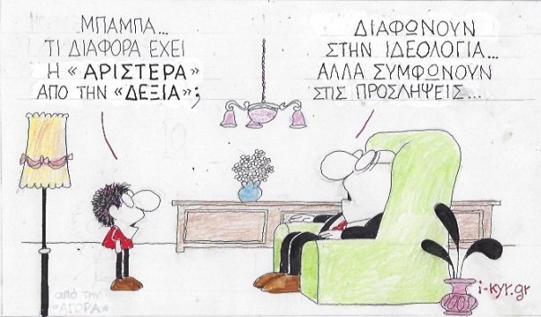 Και μετά την έξοδο από τα Μνημόνια και την είσοδο των 2 στρατιωτικών, θα επιστρέψουμε στα θύματα του Ματιού και στο αν θα περικοπούν ή όχι οι συντάξεις. Για απολύσεις δημοσίων υπαλλήλων, αξιοκρατία κ.λπ. ούτε λόγος. Μοιραία πήγε πάλι ο νους μου στον φίλο Ρηγόπουλο που χτυπιέται εδώ και χρόνια ζητώντας να εφαρμοστεί το πρόγραμμα που έχει εκπονήσει για την ψηφιακή αποτύπωση του Δημοσίου, ώστε να γνωρίζουμε ανά πάσα στιγμή ποιος υπηρετεί πού, που υπάρχουν κενά, πού υπεράριθμοι κ.λπ. Σιγά μην του κάνουν τη χάρη. Αφού βγαίνουμε από τα Μνημόνια ρε!