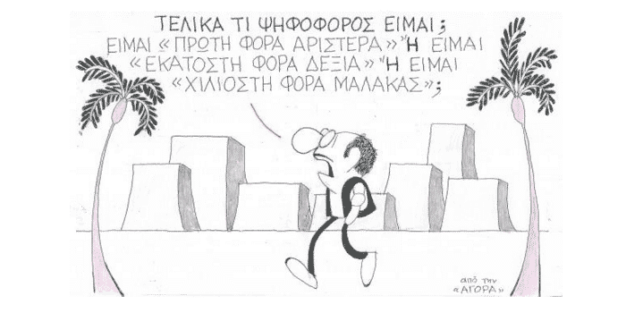 Ναι ρε φιλάρα του εξωτερικού. Αφού λες πως αυτός είμαι εγώ, έτσι θα ΄ναι. Έκανες λάθος, όμως, στη λεπτομέρεια. Το δάχτυλο το δείχνουν έτσι εσύ και τα κολλητάρια σου. Εγώ, ως Έλλην, το δάχτυλο στο δείχνω κλίνοντάς το σε ορθή γωνία με τεταμένα τα υπόλοιπα δάχτυλα και κινούμενο δίκην εμβόλου. Α, και πες μου παλληκάρι, τον Αύγουστο θα έλθεις μόνος ή με το αγόρι σου;  Να ξέρω, να είμαι καταλλήλως προετοιμασμένος. Α, και πού ’σαι ….. φέρε και μερικές eau de cologne Givenchy pour hommes, διότι τότε μπορεί να έχουμε δραχμή και να μη μπορούμε να εισάγουμε, ενώ τώρα ο Hondos είναι τίγκα στα όλως επουσιώδη εν υπερεπαρκεία.