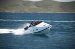 Το σκάφος πάντως, με τον 350άρη τετράχρονο Yamaha στον καθρέφτη του, ένα τεσσαρο-πεντάρη πουνέντη, έξι επιβαίνοντες και πλήρες φορτίο καυσίμου και νερού, ανέπτυξε ταχύτητα 40 κόμβων με ικανοποιητικές αποσβέσεις στο κύμα, τόσο στα όρτσα όσο και στα πρύμα. Μοναδική πρώτη παρατήρηση το χάραγμα αυτόνομων "δρόμων" της πλώρης ("βίδωμα"), η οποία κατά την γνώμη μου οφείλεται στο πολύ βαθύ της "V" (είσοδος πλώρης 69 μοίρες).