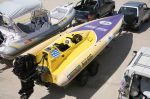 Το τουμπαρισμένο Technohull 777 ρυμουλκείται.Δεν θα επεκταθώ στα άλλα δύο σημεία τριβής  κάποιων κυβερνητών με την Επιτροπή Αγώνων, οι οποίοι δήλωσαν τις αντιρρήσεις τους απέχοντας συμβολικώς σε ένδειξη διαμαρτυρίας απ' το φετινό Πρωτάθλημα. Πρόκειται αφ' ενός μεν για το μήκος της διαδρομής του circuit, και αφ' ετέρου για την ευθύνη που έχει ή όχι η Επιτροπή, σε περίπτωση που προκληθεί κάποια ζημιά σ' ένα κινητήρα κατά τη δυναμομέτρηση. Και δεν επεκτείνομαι σ' αυτά, όχι επειδή τα θεωρώ ήσσονος σημασίας, αλλά γιατί αυτά που προανέφερα πιστεύω ότι είναι πολύ πιο σημαντικά και προσδιορίζουν την προχειρότητα με την οποία συντάσσονται και εφαρμόζονται οι Κανονισμοί αυτών των αγώνων.