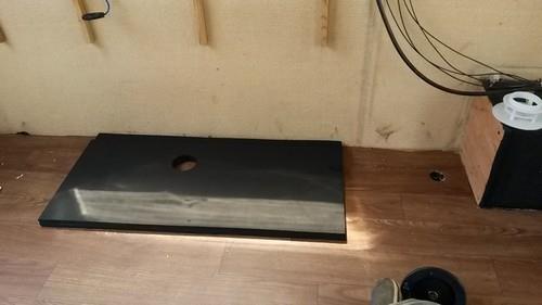 Μετά τη μικρή siesta μας, ετοιμάστηκε η τρύπα για την έξοδο της ντουζιέρας αλλά και η τρύπα για την τάπα πλήρωσης νερού προς το 40λιτρο δοχείο μας. Οπουδήποτε ανοίχτηκαν τρύπες πέρασαν 3 χέρια πίσσα για καλύτερη στεγανότητα ενώ ενισχύθηκε το πάτωμα στο σημείο στο οποίο θα πατήσει το δοχείο του νερού.