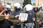 Στο Σύνταγμα οι σα-ματ-ατζήδες ήταν περισσότεροι από τους διαδηλωτές. Είχαν πιάσει όλα τα πόστα, γύρω, μπροστά και πίσω απ' το Κυνοβούλιο (καλά το έγραψα με ύψιλον, δεν έκανα λάθος) που μετετράπη τα τελευταία χρόνια σε άντρο ληστών και ακολασίας. Είχαν ζώσει ολόκληρη την πλατεία, σε μια προσπάθεια να "μαντρώσουν" την πορεία, να μην αφήσουν καμμία έξοδο διαφυγής. Φοβάται πια το θεριό, και φαίνεται. Κάθε φορά που η λαϊκή οργή και αγανάκτηση ξεχειλίζει και βγαίνει απειλητικά στους δρόμους, η κρατική καταστολή φοράει "τα καλά της" και επιστρατεύει όλες τις δυνάμεις της. Και είναι καλά οπλισμένοι, πανάθεμά τους! Τι γκλομπς, τι δακρυγόνα, τι χημικά, τι πυροσβεστήρες, τι όπλα, τι χειροπέδες, τι αλεξίσφαιρα γιλέκα, επιγονατίδες, κράνη, ασπίδες! Πού πάτε ρε παιδιά; Μπήκαν στην πόλη οι οχθροί και δεν τους πήραμε χαμπάρι;