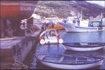 Το τμήμα της πόλης του Capri κοντά στο πρατήριο των καυσίμων και τα παλιομοδίτικα ταξί.Ο πουνέντης, εν τω μεταξύ, έδινε τα ρέστα του, με την βροχή και τα ξαφνικά ανοιξιάτικα μπουρίνια να οργιάζουν στα ενδιάμεσα! Τα κράνη δεν έλεγαν να βγουν απ' τα κεφάλια μας! Τρομερή εφεύρεση! Εκείνο το απόγευμα αναγκαστήκαμε να τρυπώσουμε σε ένα μικρό αλιευτικό καταφύγιο της δυτικής ακτής (κάπου μέσα στον κόλπο Policastro), κατάκοποι απ' την ολοήμερη πάλη μαζί Της, έχοντας καταφέρει να καλύψουμε μόλις 120 ν. μίλια από την Messina. Λέω "μόλις", γιατί αυτή ήταν περίπου η μέση ημερήσια απόσταση που καλύπταμε, σε όλη την διάρκεια εκείνου του ταξιδιού, συνυπολογιζομένων και των οκτώ συνολικώς ημερών "αναγκαστικής" ξεκούρασης στη Σκωτία, το Grimsby της Αγγλίας και την Besancon της Γαλλίας. Δεν έχει παρά να διαιρέσει κανείς την συνολική απόσταση των 6.500 περίπου ν. μιλίων με τον συνολικό χρόνο του ταξιδιού μας (54 ημέρες) για να καταλάβει τι εννοώ...