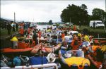 Κατασκοπεύοντας τα σκάφη των άλλων αγωνιζομένων. Εδώ ένα Flatacraft Offshore Force 5 Η δική μου ανησυχία όμως, για το τι άλλο θα μπορούσε να συμβεί, δεν έλεγε να με αφήσει. Αναρωτιόμουν, τι θα έκανε ένα παιδί δέκα ετών αν συνέβαινε κάτι σε μένα; Μ' αυτές τις δυσάρεστες σκέψεις να με βασανίζουν, ξεκινήσαμε το τρίτο σκέλος του αγώνα χωρίς να μπορούμε να φανταστούμε ότι λίγη ώρα μετά θα μέναμε και πάλι στα μετόπισθεν! Ο διαπεραστικός ήχος του συναγερμού της μηχανής με ανάγκασε να σταματήσω. Υπερθέρμανση! Αιτία η άμμος και τα φύκια που είχαν κυριολεκτικώς κατακλύσει το φίλτρο του θαλασσινού νερού! Ας όψονται τα κανάλια και τα ρηχά νερά τους. Χρειάστηκε να περάσουν δύο ώρες για να καθαρίσουμε το φίλτρο και την δίοδο του νερού ώστε να καταφέρουμε να φθάσουμε το ίδιο βράδυ στο Craobh Haven όπου είχαν ήδη αγκυροβολήσει τα υπόλοιπα φουσκωτά.