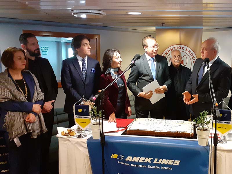 Στην συνέχεια οι εκατοντάδες παρευρισκόμενοι απόλαυσαν με τη γνωστή φιλόξενη υπογραφή της ΑΝΕΚ LINES ένα πλούσιο κρητικό κέρασμα με εκλεκτά εδέσματα.