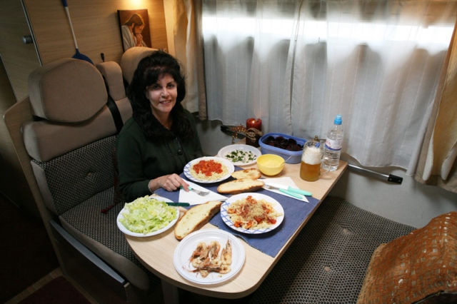 Είναι ξεχωριστές αυτές οι στιγμές απόλαυσης στο camper και με καταλαβαίνουν όσοι είναι ευτυχείς κάτοχοι ενός τέτοιου οχήματος. Έξω ο σορόκος ωρυόταν και τα κύματα έβγαζαν τα απωθημένα τους στα βράχια της ακτής, μαζί θαρρείς και τα φύκια ολόκληρης της Αδριατικής! Μπορεί να μην είχε παγωνιά, η θέρμανση όμως δεν μας "χαλούσε" καθόλου. Τα υπόλοιπα, γνωστά. Κουμάντο στο τιμόνι εγώ, κουμάντο στις γαστριμαργικές απολαύσεις η καπετάνισσα. Παίξαμε στο τέλος, σαν "επιδόρπιο", και μια παρτίδα τάβλι, άναψαν τα αίματα και πολύ το χαρήκαμε...