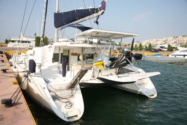 Σήμερα, μία μόλις ημέρα πριν αρχίσει η δική μας καλοκαιρινή "περιπέτεια", συνάντησα το άπιαστο "κάρμα" μου, όνειρό μου, όπως θέλετε πείτε το, που, αυτή τη φορά ακούει στο όνομα "Finally my Darling". Ένα 44άρι ιστιοπλοϊκό καταμαράν "Lagoon", ελλιμενισμένο στη μαρίνα του Σταδίου Ειρήνης και φιλίας, που έχει κρεμασμένο στην πρύμνη του ένα ιπτάμενο καταμαράν της Αυστραλέζικης "Airborne" με κινητήρα 582 της "Rotax"! Το τετραμελές πλήρωμα του σκάφους αποτελείται από τους Col Darling και την σύζυγό του Pam, την κόρη τους Brooke και τον σύζυγό της Mike, όλοι Αυστραλοί υπήκοοι, που αγόρασαν το σκάφος στην Κροατία, αντί 315.000 ευρώ και μετέφεραν σε cotainer από την Αυστραλία το καταμαράν μοτοαιωρόπτερο της "Airborn", που αγόρασαν ελαφρώς μεταχειρισμένο αντί 37.000 ευρώ Έφθασαν εν πλω στον Πειραιά, αφού πρώτα πέρασαν από το Μαυροβούνιο, την Βενετία και τα δικά μας νησιά του Ιονίου, με τα επόμενα σχέδιά τους να περιλαμβάνουν μια καλοκαιρινή περιπλάνηση στα νησιά του Αιγαίου και ξεχειμώνιασμα στο λιμάνι Marmaris της Τουρκίας. Με τον ερχομό του νέου έτους θα αρχίσει η Οδύσσειά τους, με τελικό προορισμό την δική τους "Ιθάκη", το Brisbane της Αυστραλίας, μέσω Γιβραλτάρ, Διώρυγας του Παναμά και Ειρηνικού Ωκεανού! Συγχωρήστε με αλλά, και μόνο στη σκέψη, "μούσκεψα" από ηδονή!