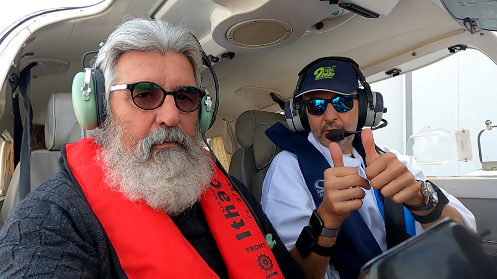 Όση ώρα πετούσαμε πάνω απ' τον Σαρωνικό ο Πάνος επαναλάμβανε διαρκώς πόσο ασυνήθιστο είναι αυτό το φαινόμενο της ομίχλης για την συγκεκριμένη περιοχή, ενώ έδειχνε ιδιαίτερα στενοχωρημένος που δεν θα μπορούσαμε να απολαύσουμε το τοπίο από ψηλά. Η ομίχλη πάντως, καθώς πετούσαμε πάνω απ' το Αγκίστρι, τα Μέθανα, τον Πόρο και την Αίγινα μειώθηκε, με αποτέλεσμα να δούμε καθαρά το ηφαίστειο και το λιμάνι των Μεθάνων, τον Πόρο και την Αγία Μαρίνα της Αίγινας.