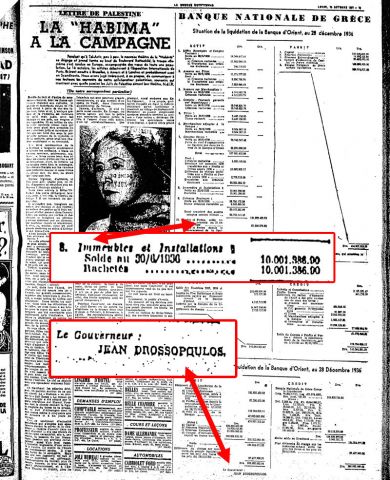 Για του λόγου το αληθές ας δούμε το εσωτερικό έγγραφο της ίδιας της Εθνικής Τράπεζας, με ημερομηνία 2 Δεκεμβρίου 1936, το οποίο απευθύνει η Υπηρεσία Εργασιών Υποκαταστημάτων Εξωτερικού της Εθνικής Τράπεζας προς την Υπηρεσία Εκκρεμών Λογαριασμών Εσωτερικού του Γενικού Λογιστηρίου της Εθνικής Τράπεζας, με θέμα «Κατάστημα Τραπέζης της Ανατολής εν Αθήναις Οδός Σοφοκλέους αρ. 6».